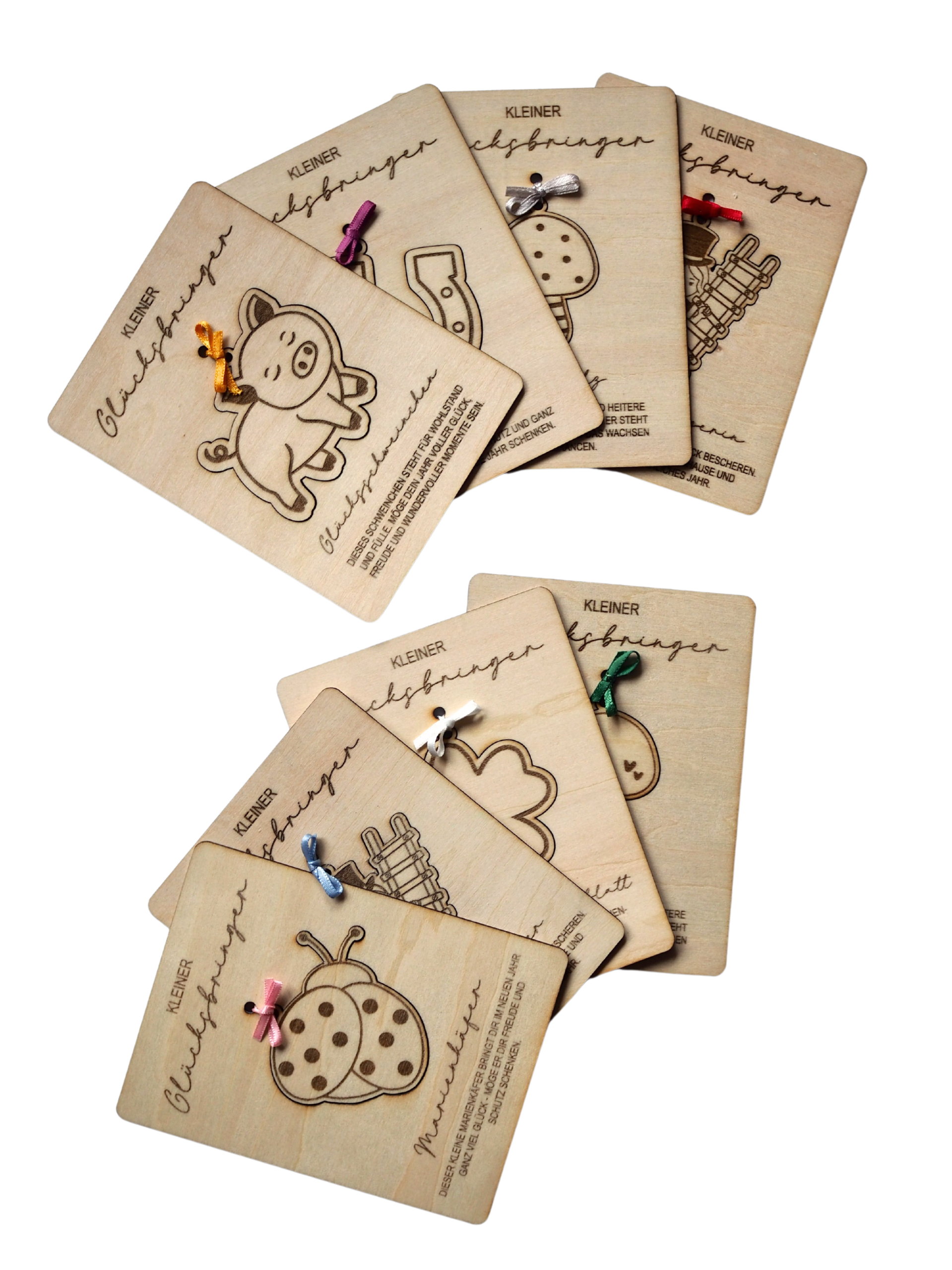 8 verschiedene Motive zur Auswahl. Die Schleifenfarbe kann variieren.
