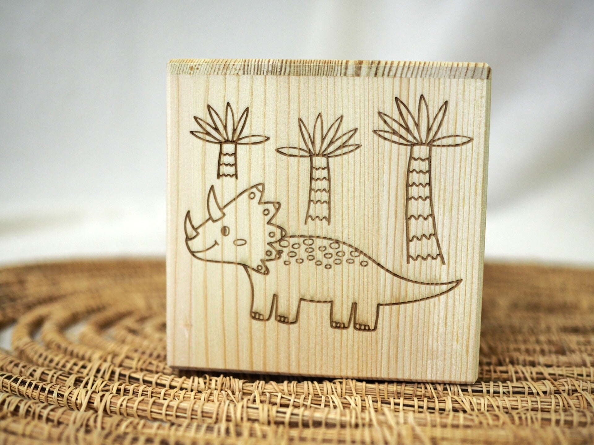 Dino-tastische Spardose aus Holz. Rundum graviert mit coolen Motiven und mit Wunschnamen personalisiert.